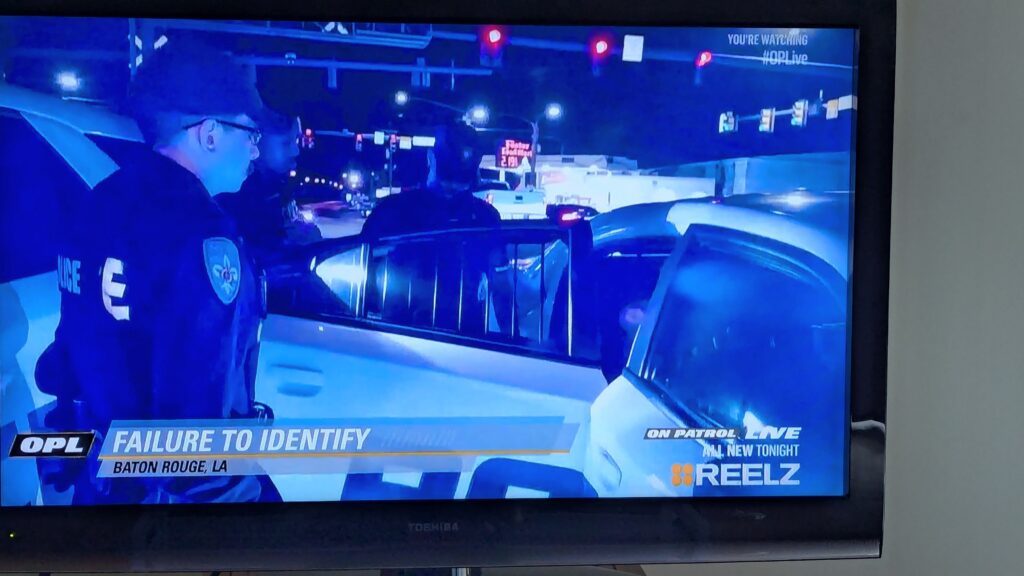 He tells the officer “I got it like this at the dealer.” The officer says something to effect of “every car comes from a dealer.” When prompted for a license he’s a “Traveler,” and adds “as we all are (travelers)”